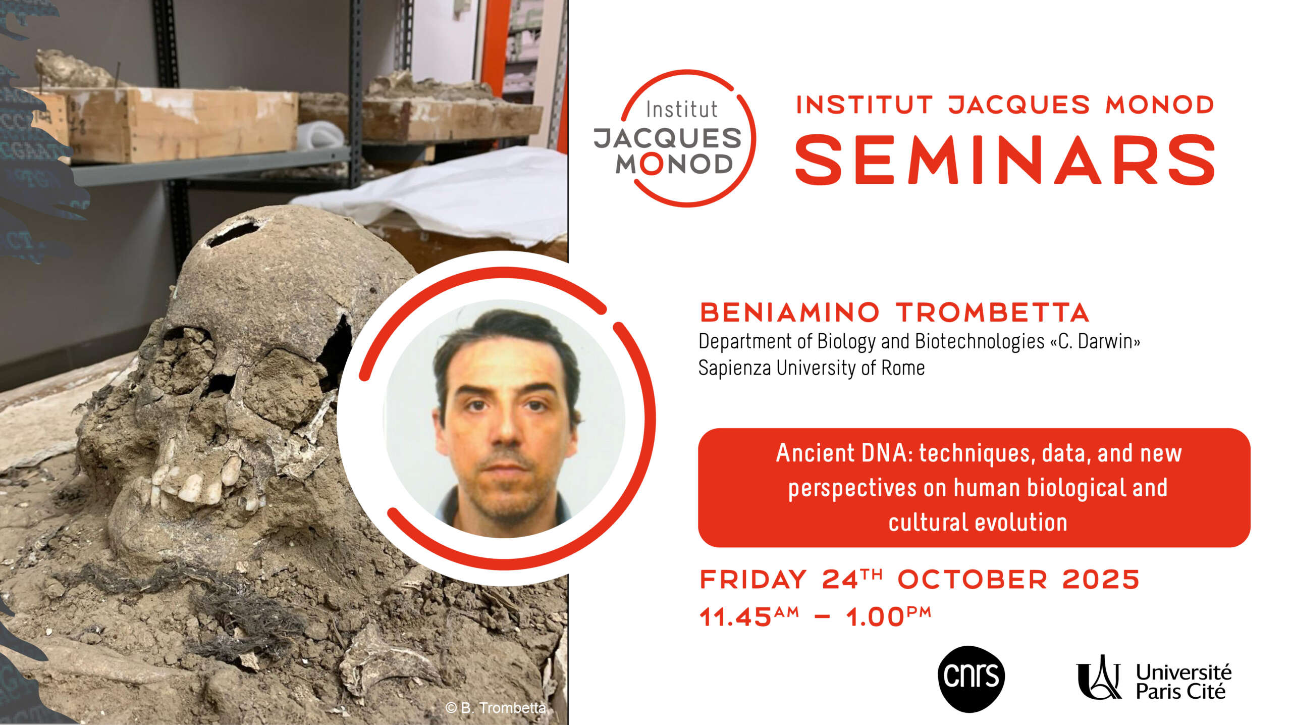 Invité par l'équipe Guichet, Beniamino Trombetta présentera un séminaire de l'Institut Jacques Monod sur le thème : Ancient DNA: techniques, data, and new perspectives on human biological and cultural evolution…