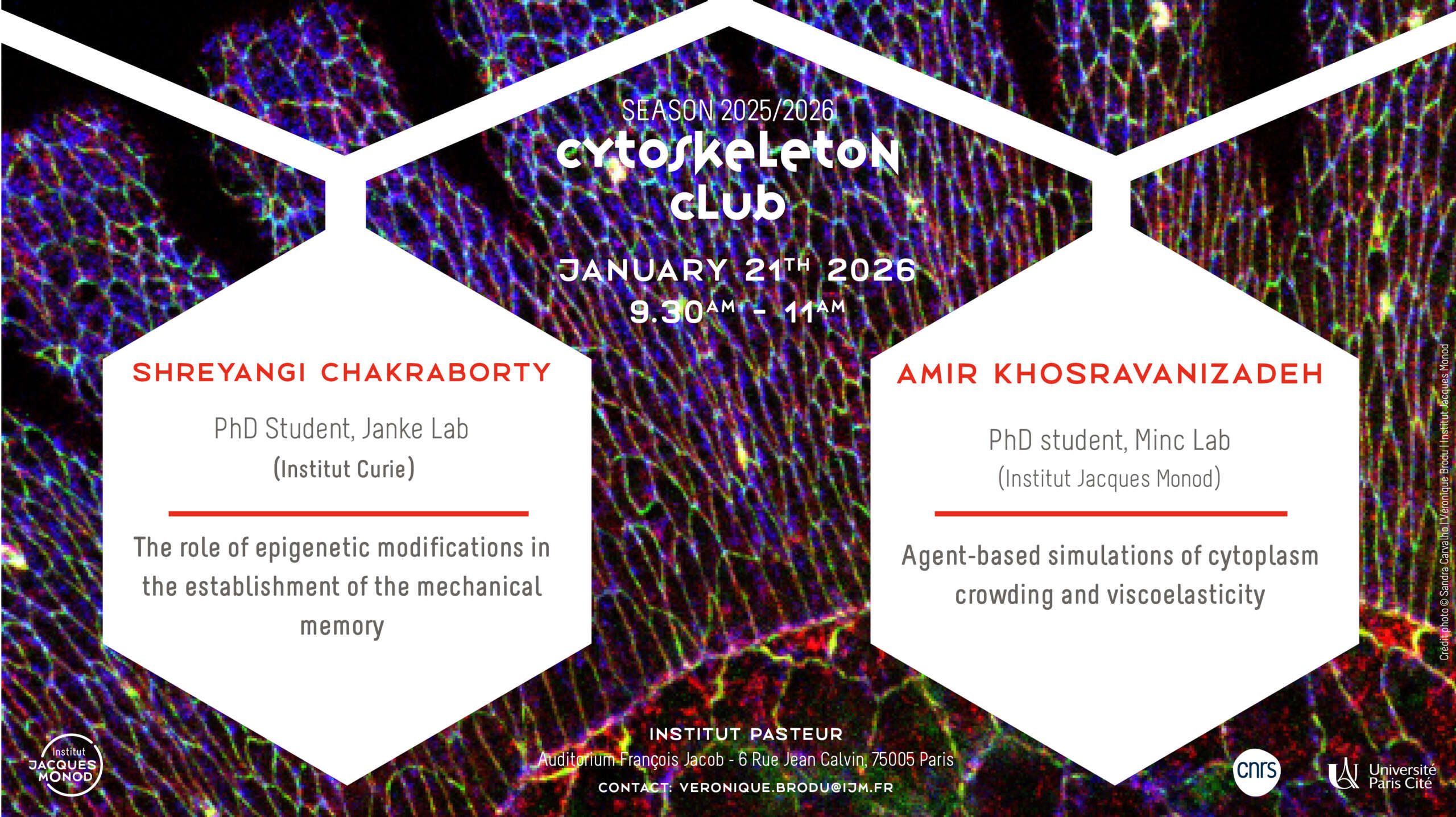 La prochaine réunion du cytoskeleton club aura lieu mercredi 21 janvier à l'Institut Pasteur : Shreyangi CHAKRABORTY (PhD student, C. Janke’s team, Institut Curie Orsay) présentera "The role of tubulin… |