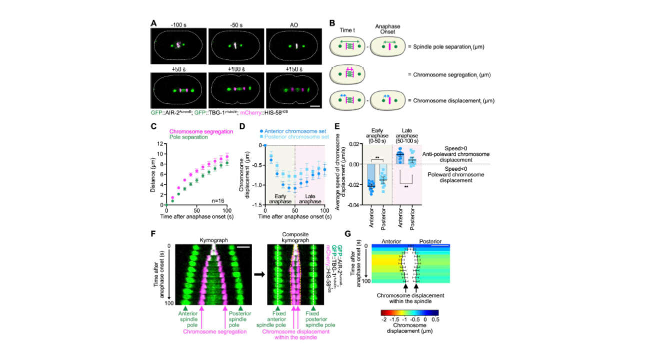 Chromosome segregation during anaphase occurs through two mechanistically distinct processes: anaphase A, in which chromosomes move toward spindle poles, and…