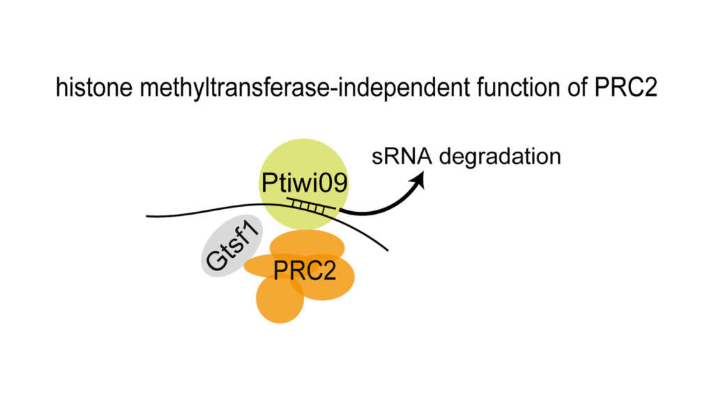 Crédit figure : Miró-Pina C, Charmant O, Giovannetti M, de Vanssay A, Frapporti A, Humbert A, Lhuillier-Akakpo M, Chevreux G, Arnaiz O, Duharcourt S. A histone methyltransferase-independent function of PRC2 controls small RNA dynamics during programmed DNA elimination in Paramecium. Nucleic Acids Res. 2025 Oct 14;53(19):gkaf1048. doi: 10.1093/nar/gkaf1048. PMID: 41099712; PMCID: PMC12529928.