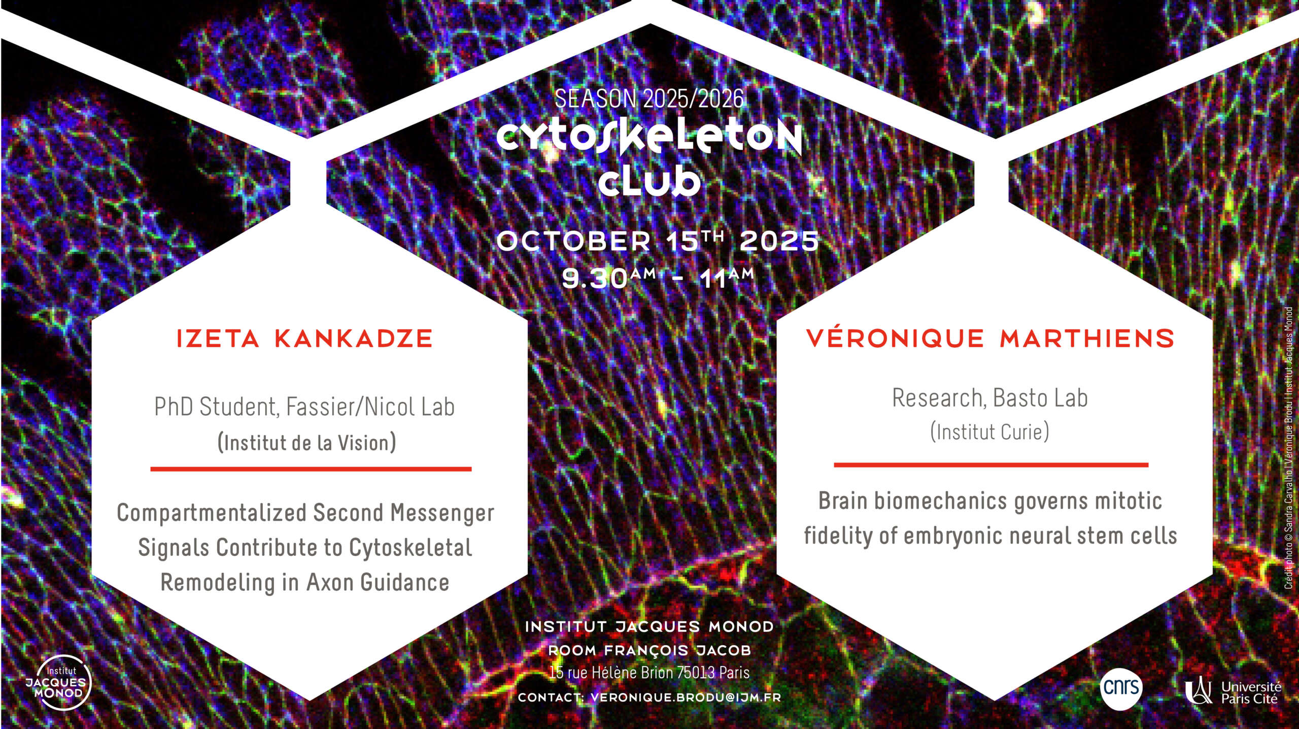 La prochaine réunion du cytoskeleton club aura lieu mercredi 15 octobre à l’Institut Jacques Monod :