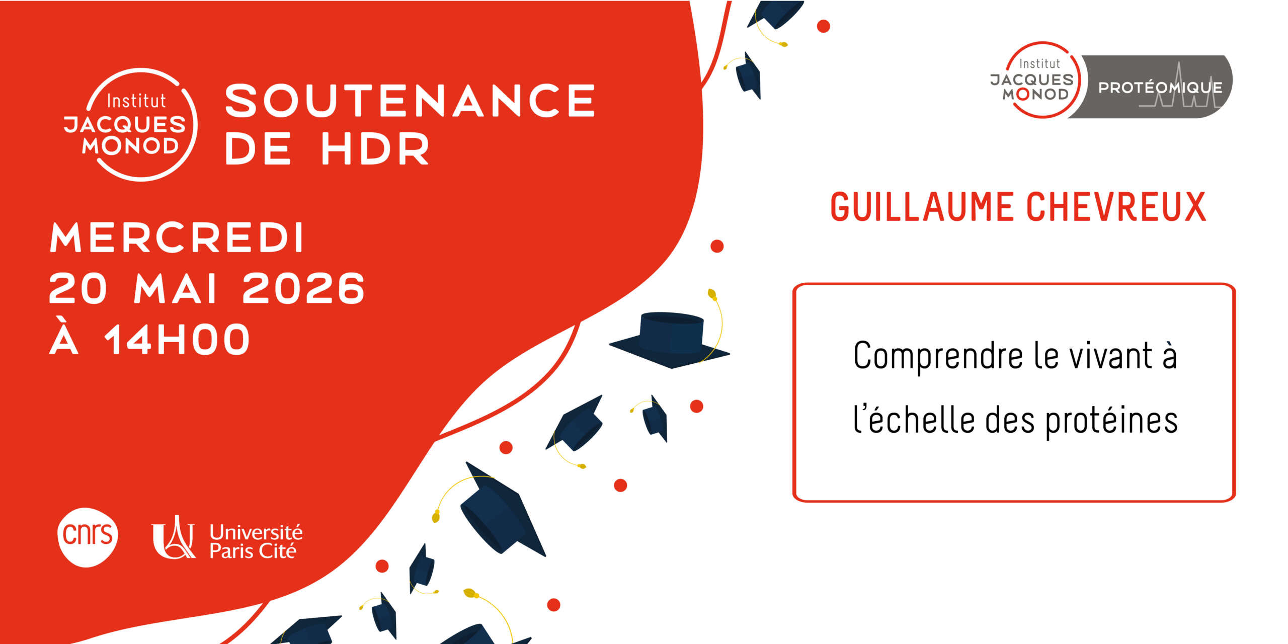 Guillaume Chevreux (ProtéoSeine platform) will defend his Authorization to supervise research (HDR): "Comprendre le vivant à l’échelle des protéines" The defense will take place on Wednesday, May 20th at 2…