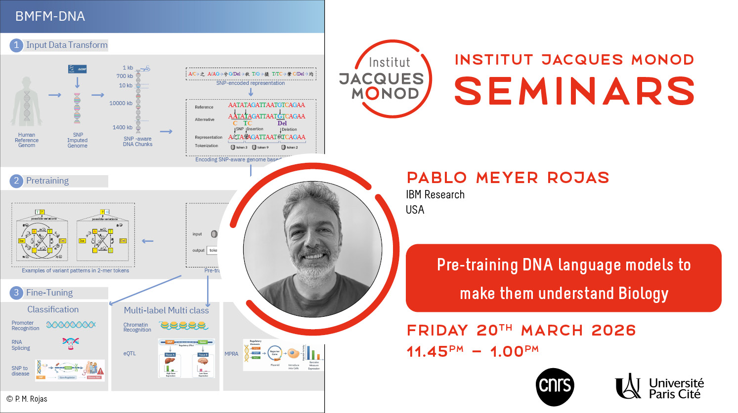 Invité par l'équipe Minc, Pablo Meyer Rojas, Manager of Biological Analytics and Modeling group and Senior Research Scientist IBM Research USA, présentera un séminaire de l'Institut Jacques Monod sur le… |